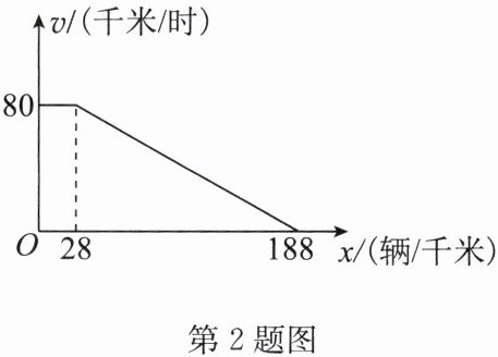 (1)由图像知,当 $ 0 ≤ x ≤ 28 $ 时,$ v = 80 $,