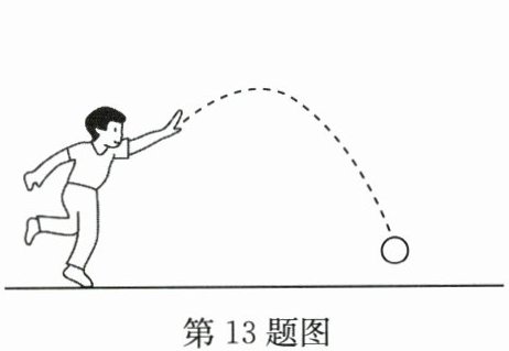 13. 如图,教练对小明推铅球的录像进行技术分析,发现铅球行进高度$y(m)$与水平距离$x(m)$之间的关系为$y = -\frac{1}{12}(x - 4)^2 + 3$,由此可知铅球推出的距离是