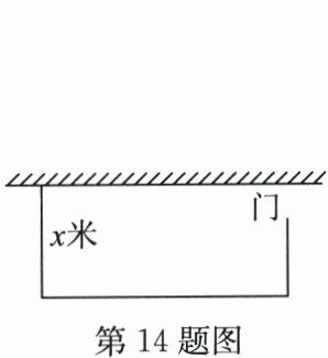 14. 退休的李老师借助自家15米的院墙和总长度为30米的围栏,在院墙外设计了一个矩形花圃种植花草.为方便进出,他在如图所示的位置安装了一个1米宽的门.设与墙相邻的一边长$x$米,花圃的面积为$y$平方米,则$y$与$x$之间的函数表达式为