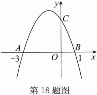 18. 如图,抛物线$y = ax^2 + bx + c(a ≠ 0)$与$x$轴交于点$A(-3,0)$和点$B(1,0)$,与$y$轴交于点$C$.下列说法:①$abc < 0$;②抛物线的对称轴为直线$x = -1$;③当$-3 < x < 0$时,$ax^2 + bx + c > 0$;④当$x > 1$时,$y$随$x$的增大而增大;⑤若点$C(m,n)$在二次函数图像上,则$a - b > m(am + b)$.其中正确的序号有