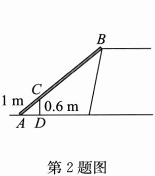 2. 如图,把一根长为4.5m的竹竿AB斜靠在石坝旁,量出竿长1m处离地面的高度为0.6m,则石坝的高度为(