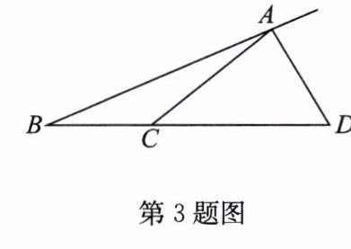 3. 如图,$ AD $ 是 $ △ ABC $ 的外角平分线,且 $ \frac{AB}{AC}=\frac{\sqrt{5}+1}{2} $,求证:$ C $ 是 $ BD $ 的黄金分割点。