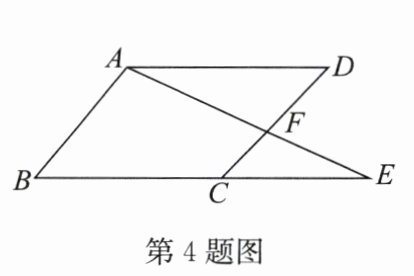 4. 如图, $ E $ 是 $ □ ABCD $ 的边 $ BC $ 的延长线上一点,连接 $ AE $ 交 $ CD $ 于点 $ F $,则图中相似三角形共有 (