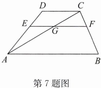 7. 如图,在梯形 $ ABCD $ 中, $ DC // EF // AB $, $ AC $ 交 $ EF $ 于点 $ G $.若 $ AE = 2ED $, $ CF = 2 \mathrm{ cm} $, $ AG = 5 \mathrm{ cm} $,则 $ BC = $