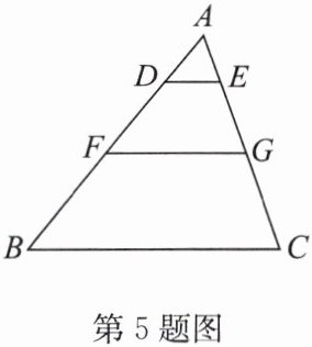 5. 如图, $ DE // FG // BC $, $ AD:DF:FB = 2:3:4 $,如果 $ EG = 4 $,那么 $ AC = $