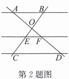 2. 如图,直线 $ AD $, $ BC $ 交于点 $ O $, $ AB // EF // CD $,若 $ BO = 2 $, $ OE = 1 $, $ EC = 2 $,则 $\frac{AF}{FD}$ 的值为 (