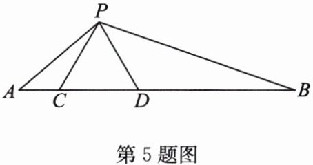 5. 如图,点 $ C $,$ D $ 在线段 $ AB $ 上,$ △ PCD $ 是等边三角形,且 $ AC=1 $,$ CD=2 $,$ DB=4 $. 求证:$ △ ACP∼ △ PDB $.