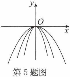 5. 如图,在同一平面直角坐标系中,作出① $ y = -3x^{2} $,② $ y = -\frac{1}{2}x^{2} $,③ $ y = -x^{2} $ 的图像,则从里到外的三条抛物线对应的函数依次是