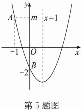5. 如图,抛物线 $ y = a x ^ { 2 } + b x + c ( a ≠ 0 ) $ 的对称轴为直线 $ x = 1 $,与 $ y $ 轴交于点 $ B ( 0, - 2 ) $,点 $ A ( - 1, m ) $ 在抛物线上,则下列结论中正确的是(