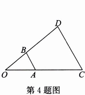 4. 如图,以点$O$为位似中心,将$△ OAB$放大后得到$△ OCD$,$OA = 2$,$AC = 3$,则$\dfrac{AB}{CD}$的值为(