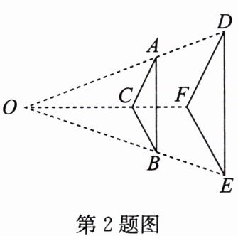 2. 如图,$△ ABC$与$△ DEF$是位似图形,相似比为$2:3$,已知$DF = 4$,则$AC$的长为(
