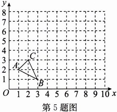 5. 如图,$△ ABC$的顶点坐标分别为$A(1,2)$,$B(3,1)$,$C(2,3)$。以坐标原点为位似中心,将$△ ABC$按相似比$2:1$放大,得到$△ A'B'C'$。