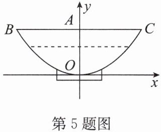 5. 东台鱼汤面是“中华名小吃”. 如图是一个面碗的截面图,碗身可近似看作抛物线,以碗底 $O$ 为原点建立平面直角坐标系,已知碗口 $BC$ 宽 $28\ \mathrm{cm}$,碗深 $OA = 9.8\ \mathrm{cm}$,则当满碗汤面的竖直高度下降 $4.8\ \mathrm{cm}$ 时,碗中汤面的水平宽度为