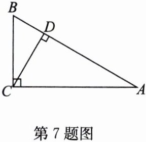 7. 如图,在 $ \mathrm{Rt} △ ABC $ 中, $ ∠ ACB = 90^{\circ} $, $ CD ⊥ AB $ 于点 $ D $。