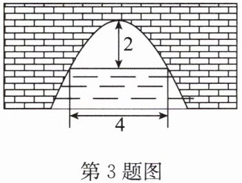 3. 如图是一个横断面为抛物线形状的拱桥,当水面宽 $ 4 \mathrm{ m} $ 时,拱顶(拱桥洞的最高点)离水面 $ 2 \mathrm{ m} $,当水面上升 $ 1 \mathrm{ m} $ 时,水面的宽为