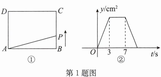 1. (2024·凉州区期末)如图①,在矩形 ABCD 中,动点 P 从点 B 出发,以 2 cm/s 的速度沿折线 B—C—D—A 匀速运动至点 A 停止. 设点 P 的运动时间为 t(s),△PAB 的面积为 y(cm²),y 关于 t 的函数图像如图②所示,则矩形 ABCD 的对角线长为 (