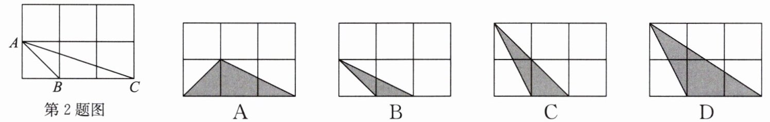 2. 如图,小正方形的边长均为$1$,则下列图形中的三角形(阴影部分)与$△ ABC$相似的是(