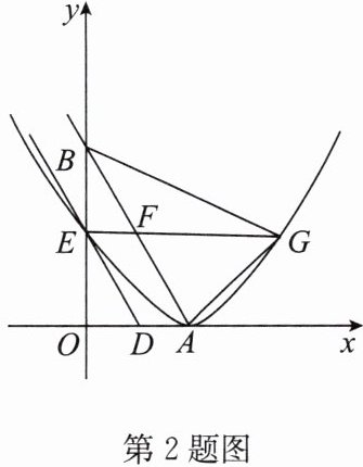 2.(2024·睢宁县模拟)如图,直线$y=-\sqrt{3}x+2\sqrt{3}$与x轴,y轴分别交于点A,B,两动点D,E分别从点A,B同时出发向点O运动(运动到点O停止),运动速度分别是1个单位长度/秒和$\sqrt{3}$个单位长度/秒,设运动时间为t秒.以A为顶点的抛物线经过点E,过点E作x轴的平行线,与抛物线的另一个交点为G,与AB相交于点F.