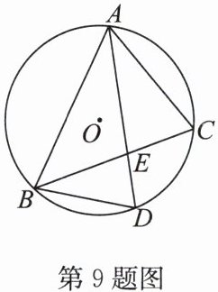 9. 如图,$\odot O$是$△ ABC$的外接圆,$AD$平分$∠ BAC$交$\odot O$于点$D$,若$AD = 5$,$BD = 2$,则$DE$的长为