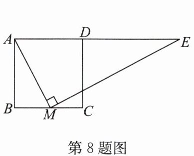 8. 如图,在正方形$ABCD$中,$M$为$BC$上一点,$ME⊥ AM$,$ME$交$AD$的延长线于点$E$。若$AB = 12$,$BM = 5$,则$DE$的长为(