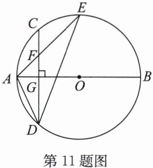 11. 如图,$AB$ 是 $\odot O$ 的直径,弦 $CD ⊥ AB$ 于点 $G$。$F$ 是 $CG$ 的中点,连接 $AF$ 并延长交 $\odot O$ 于点 $E$,连接 $AD$,$DE$。