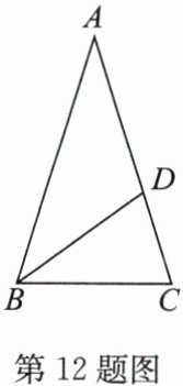 12. (2024·徐州期末)如图,在 $△ ABC$ 中,$AB = AC$,$∠ A = 36°$,$BD$ 是 $∠ ABC$ 的平分线。