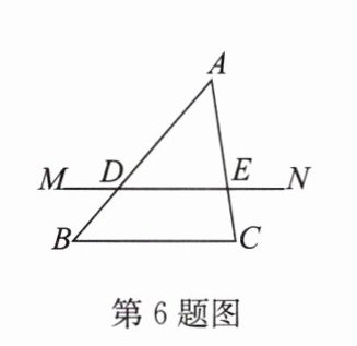 6. 如图,直线 $MN// BC$,直线 $MN$ 经过$△ ABC$的重心,且直线 $MN$ 分别交 $AB$,$AC$ 于点 $D$,$E$,那么$△ ADE$与$△ ABC$的相似比是