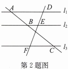 2. 如图,$l_1// l_2// l_3$,若$\frac{AB}{BC}=\frac{2}{3}$,$DF = 15$,则$EF$等于 (