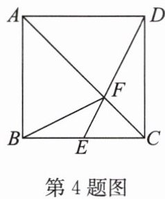 4. 如图,在正方形$ABCD$中,$E$是$BC$边的中点,$DE$与$AC$相交于点$F$,连接$BF$,有下列结论: