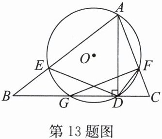 13. (16分)如图,在$△ ABC$中,$AD$是$BC$边上的高,经过点$A$,$D$的$\odot O$与边$AB$,$AC$,$BC$分别交于点$E$,$F$,$G$,连接$DE$,$DF$,$GF$,且$\overset{\frown}{DF}=\overset{\frown}{EG}$.