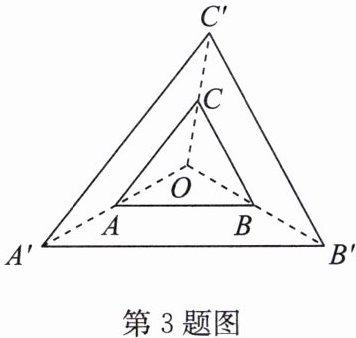3. (2024·徐州期末)如图,$△ ABC$与$△ A'B'C'$是位似图形,点$O$是位似中心,若$OA = AA'$,$S_{△ ABC} = 8$,则$S_{△ A'B'C'} =$