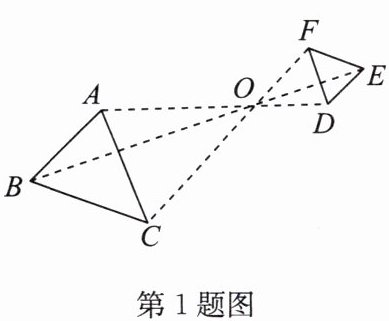 1. 如图,$△ ABC$与$△ DEF$位似,点$O$是它们的位似中心,其中$OA:OD = 2:1$,若$DE = 4$,则$AB$的长为(