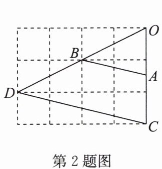 2. (2025·眉山)如图,在$4×3$的正方形网格中,每个小正方形的边长均为1,将$△ OAB$以点$O$为位似中心放大后得到$△ OCD$,则$△ OAB$与$△ OCD$的周长之比是(