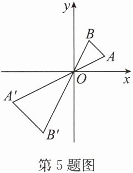 5. (2025·内蒙古)如图,在平面直角坐标系中,$△ OAB$的顶点坐标分别是$O(0,0)$,$A(2,1)$,$B(1,2)$,以原点$O$为位似中心,在第三象限画$△ OA'B'$与$△ OAB$位似,若$△ OA'B'$与$△ OAB$的相似比为$2:1$,则点$A$的对应点$A'$的坐标为(