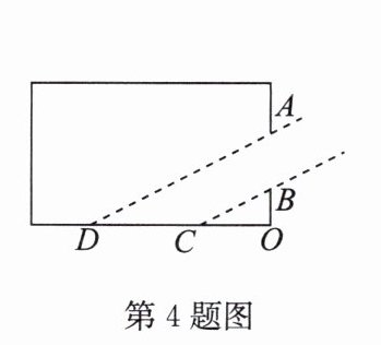 4. 阳光从窗户射到教室地面的截面图如图,量得 $OC = 2\ \mathrm{m}$,$CD = 3\ \mathrm{m}$,$OB = 1\ \mathrm{m}$,则窗户的高度 $AB$ 是