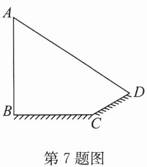 7. 如图,小明想测量电线杆 $AB$ 的高度,发现电线杆的影子恰好落在土坡的坡面 $CD$ 和地面 $BC$ 上,量得 $CD = 4\ \mathrm{m}$,$BC = 10\ \mathrm{m}$,$CD$ 与地面成 $30^{\circ}$ 角,且此时测得 $1\ \mathrm{m}$ 高的标杆在地面上的影长为 $2\ \mathrm{m}$,则电线杆的高度约为