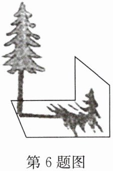 6. 某数学兴趣小组的同学想测量一棵树的高度,在阳光下,一名同学测得一根长为 $1$ 米的竹竿的影长为 $0.8$ 米。同时另一名同学测量一棵树的高度时,发现树的影子不全落在地面上,有一部分影子落在教学楼的墙壁上(如图),其影长为 $1.2$ 米,落在地面上的影长为 $2.4$ 米,则树高为