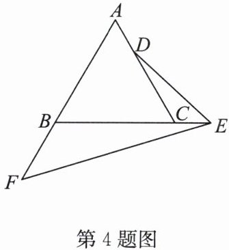 4. 如图,△ABC为等边三角形,点D在边AC上,点E,点F分别在BC,AB的延长线上,∠DEF = 60°。