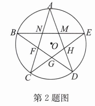 2. (2024·高新区一模)如图,将⊙O的圆周分成五等份,依次隔一个分点相连,即成一个正五角星形.此时M是线段AD,BE的黄金分割点,也是线段NE,AH的黄金分割点,则$\frac{MN}{AM}$=