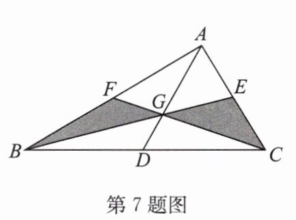 7. 如图,$△ ABC$三边的中线$AD$,$BE$,$CF$相交于点$G$,若$S_{△ ABC} = 6$,则图中阴影部分的面积是