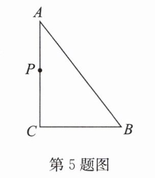 5. 如图,在$Rt△ ABC$的直角边$AC$上有一点$P$(不与点$A$,$C$重合),过点$P$作一条直线,将$△ ABC$分成一个三角形和一个四边形,则所得到的三角形与原三角形相似的直线最多有