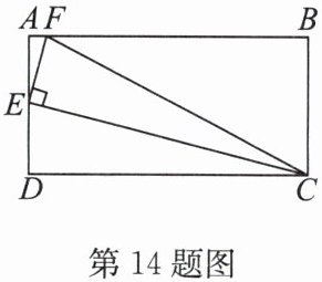 14. 如图,在矩形 $ ABCD $ 中,$ AB = 2AD $,$ E $ 为 $ AD $ 的中点,$ EF ⊥ EC $ 交 $ AB $ 于点 $ F $,连接 $ FC $,求 $ \tan ∠ ECF $ 的值.