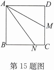 15. 如图,在正方形 $ ABCD $ 中,$ M $ 为 $ DC $ 的中点,$ N $ 为 $ BC $ 上一点,$ BN = 3CN $,求 $ \tan ∠ MAN $ 的值.