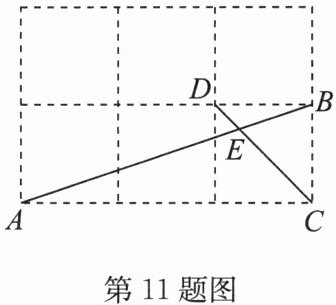 11. 如图,在由边长为 $1$ 的小正方形组成的网格中,点 $A$,$B$,$C$,$D$ 都在这些小正方形的顶点上,$AB$,$CD$ 相交于点 $E$,则 $\tan∠ AED$ 的值为