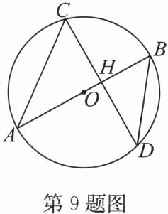 9. 如图,$AB$ 是 $\odot O$ 的直径,弦 $CD⊥ AB$,垂足为 $H$,已知 $\tan∠ CDB=\dfrac{3}{4}$,$BD = 5$,则 $OH$ 的长度为(