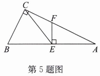 5. 如图,在 $ \mathrm{Rt} △ ABC $ 中,$ ∠ ACB = 90^{\circ} $,$ CE $ 是斜边 $ AB $ 上的中线,过点 $ E $ 作 $ EF ⊥ AB $ 交 $ AC $ 于点 $ F $. 若 $ BC = 4 $,$ △ AEF $ 的面积为 5,则 $ \sin ∠ CEF $ 的值为 (