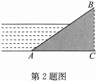 2. (2025·绥化)如图,某水库堤坝横断面迎水坡 $ AB $ 的斜面坡度 $ i = 1:\sqrt{2} $ (斜面坡度是指坡面的铅直高度 $ BC $ 与水平宽度 $ AC $ 的比),堤坝高 $ BC = 15\ \mathrm{m} $,则迎水坡面 $ AB $ 的长度是