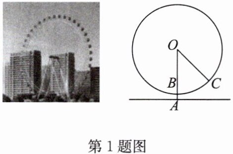 1. 如图,某游乐场有一座摩天轮,其直径为 90 m,旋转 1 周用时 15 min. 小明从摩天轮的底部(与地面相距 0.5 m)出发开始观光,摩天轮转动 1 周,小明在离地面 68 m 以上的空中的时间是(