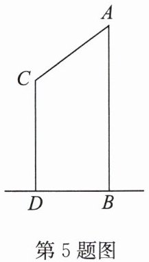 5. (2025·上海)如图,某公司安装了一个人脸打卡器,$ AB $ 是高 2.7 m 的门框,某人 $ CD $ 高 1.8 m,只有当 $ ∠ CAB = 53° $ 时,他才能开门,那么 $ BD $ 长为
