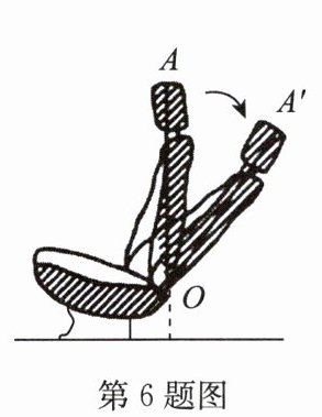 6. 如图是一把可调节座椅的侧面示意图,已知头枕上的点 $ A $ 到调节器点 $ O $ 处的距离为 80 cm,$ AO $ 与地面垂直. 现调节靠背,把 $ OA $ 绕点 $ O $ 顺时针旋转 $ 35° $ 到 $ OA' $ 处,则调整后点 $ A' $ 比调整前点 $ A $ 的高度降低了